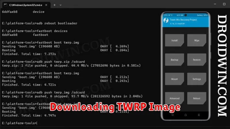 ADB (Android Debug Bridge) and Fastboot are essential tools for interacting with your Android device from a computer. They are required for installing TWRP.