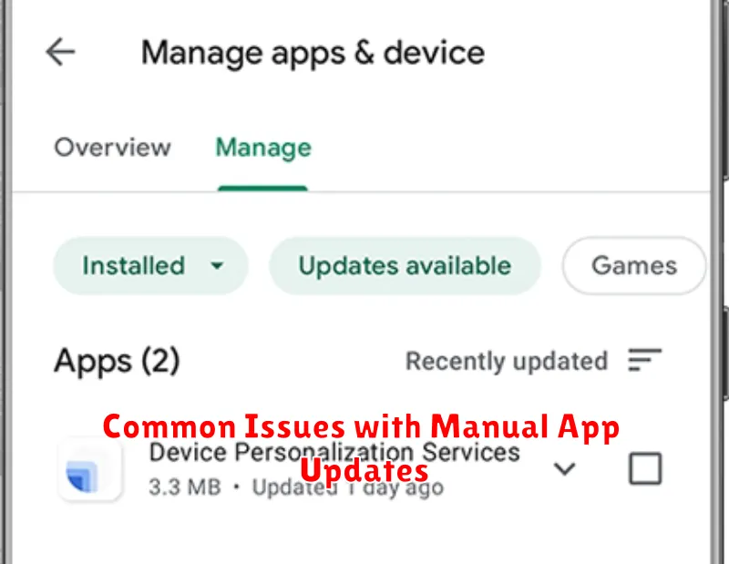 Sometimes, manual app updates don’t go as planned. Here are some common issues and how to address them: